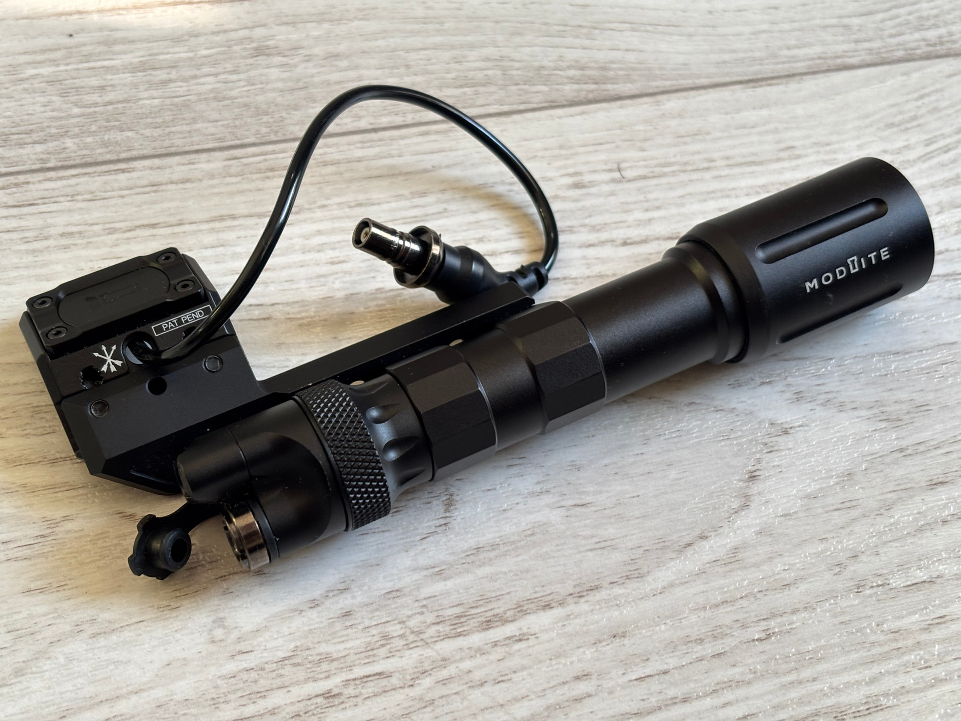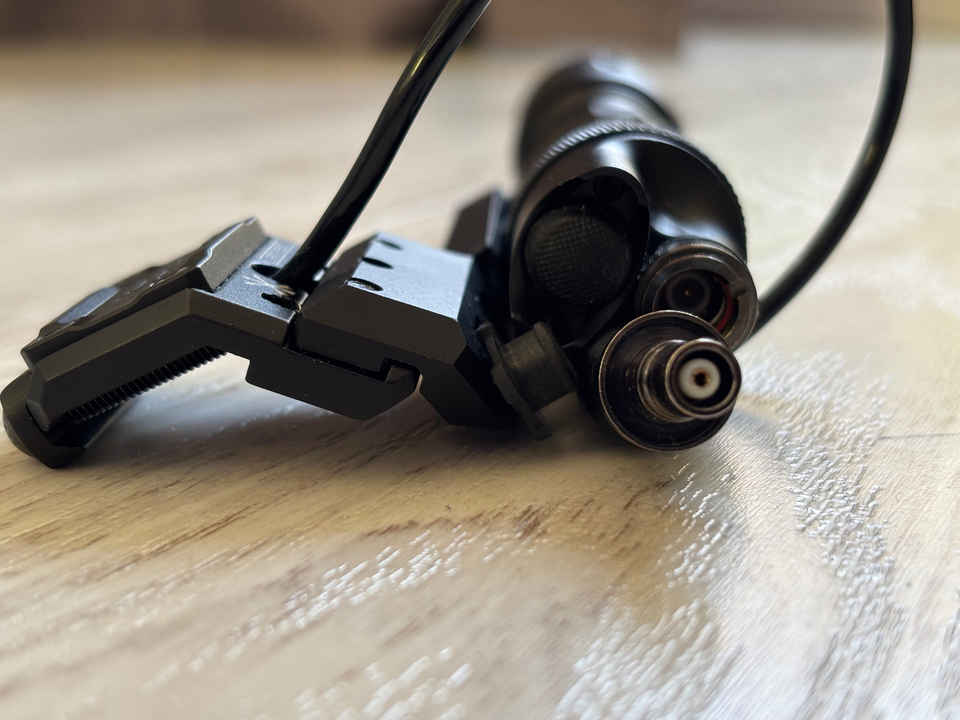 Sama latarka i montaż są dobrze wykonane, sotac klepie dojebane kopie latarek, przewód jest wzmocniony i bardziej elastyczny, dodatkowo wtyk posiada te “białe wypełnienie”, które widać na ostatnim zdjęciu, przez co nie przerywa działania podczas ruszania kabla i siedzi sztywno w latarce. Końcówka jest zrobiona na wzór DS00 od surefire, czyli mam przycisk oraz wtyk na przewód. Brałem z tej aukcji